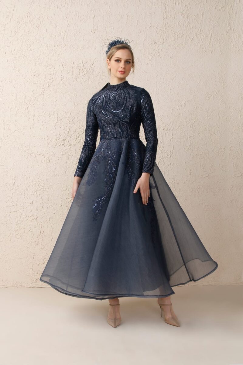 שמלה צנועה ועשירה מבד יוקרתי
